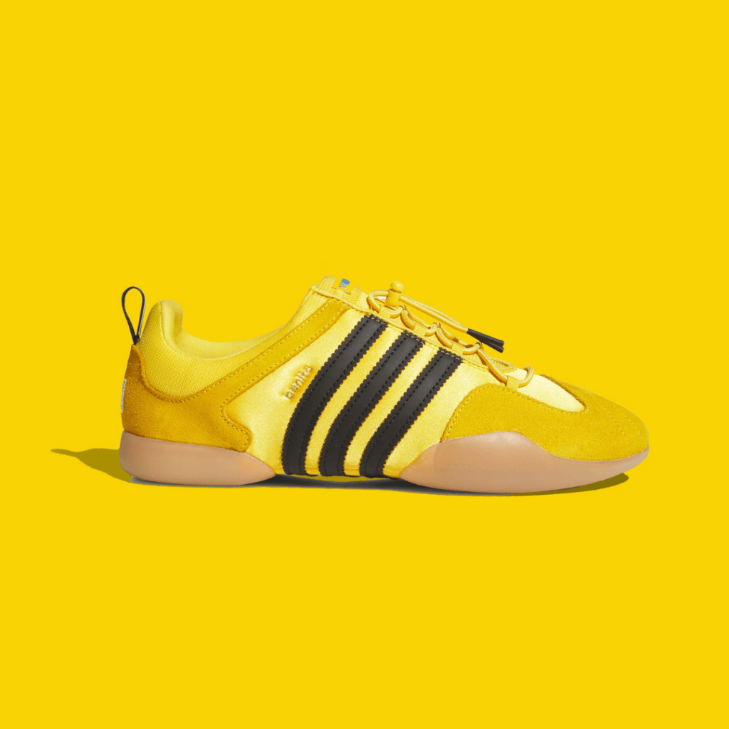 De “Ballerina” wint gestaag terrein. Na twee eerder ingetogen versies keert de sneaker van Bad Bunny terug in een opvallend “bold gold” geel. Geïnspireerd door dansschoenen, belichaamt deze release de ballet-core esthetiek, maar dan gedragen door een mannelijke icoon. Een culturele twist die echoot met de roots van de rapper uit Puerto Rico, waar dans en muziek dagelijkse kost zijn. Dankzij het snelle vetersysteem sta je in een mum van tijd op de dansvloer. De zool, overgenomen van de Taekwondo, garandeert comfort en flexibiliteit. Een hybride, gedurfde silhouette die doet denken aan de Onitsuka Tigers die Uma Thurman droeg in Kill Bill. Een stap vooruit, geen misstap.