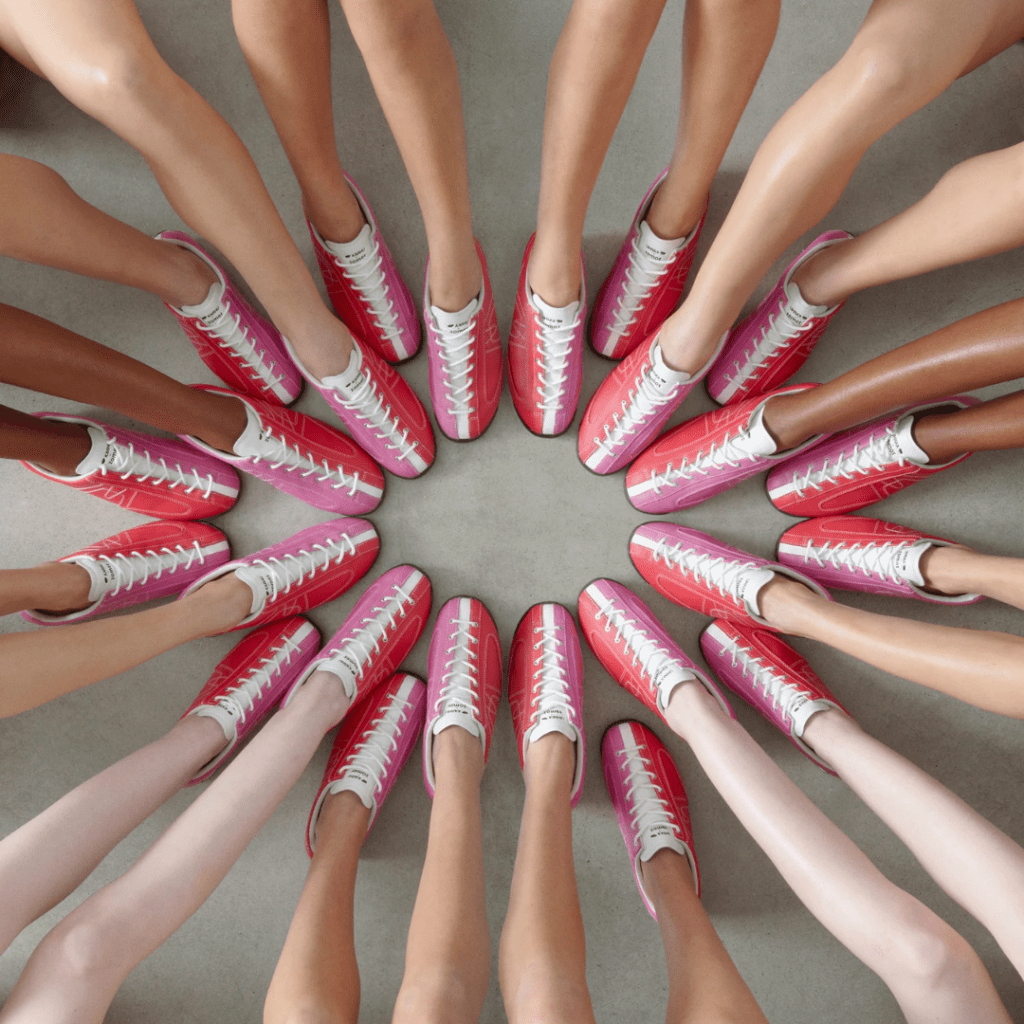 Het Finse merk Karhu slaat de handen ineen met het jonge label Zomer, geleid door Imruh Asha en Danial Aitouganov — finalisten van de LVMH Prize voor jonge ontwerpers. Samen herwerken ze de Mestari Kesä in een levendig kleurenpalet, waarin fuchsia en rood, maar ook bruin en groen elkaar ontmoeten. Een derde optie in mat zilver past perfect in de bredere trend van opvallende, retro-geïnspireerde sneakers. De esthetiek verwijst naar vintage bowlingschoenen, met een twist dankzij het iconische bicolor-effect dat symbool staat voor de ontmoeting tussen beide werelden. De campagne van Dan Tobin Smith toont menselijke mandala’s: een hypnotiserend spel tussen visuele kunst en performance.: een mix van visuele kunst en performance.