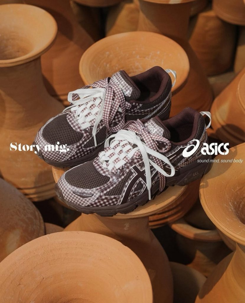 Eerste samenwerking, eerste succes voor het ethische Britse label Story mfg., dat zijn duurzame visie loslaat op de Asics Gel-Venture 6. De sneaker, verkrijgbaar in lavendel en bruin, eert outdooractiviteiten zoals wandelen en hiken met zijn vichyprint. De bijhorende campagne weerspiegelt de inclusieve en zorgzame filosofie van oprichters Saeed en Katy Al-Rubeyi, door profielen te belichten die zelden zichtbaar zijn in de modesector. Een sterke zet, want de collectie is al uitverkocht op de website van Story mfg., in afwachting van de wereldwijde release op 18 april bij geselecteerde retailers.