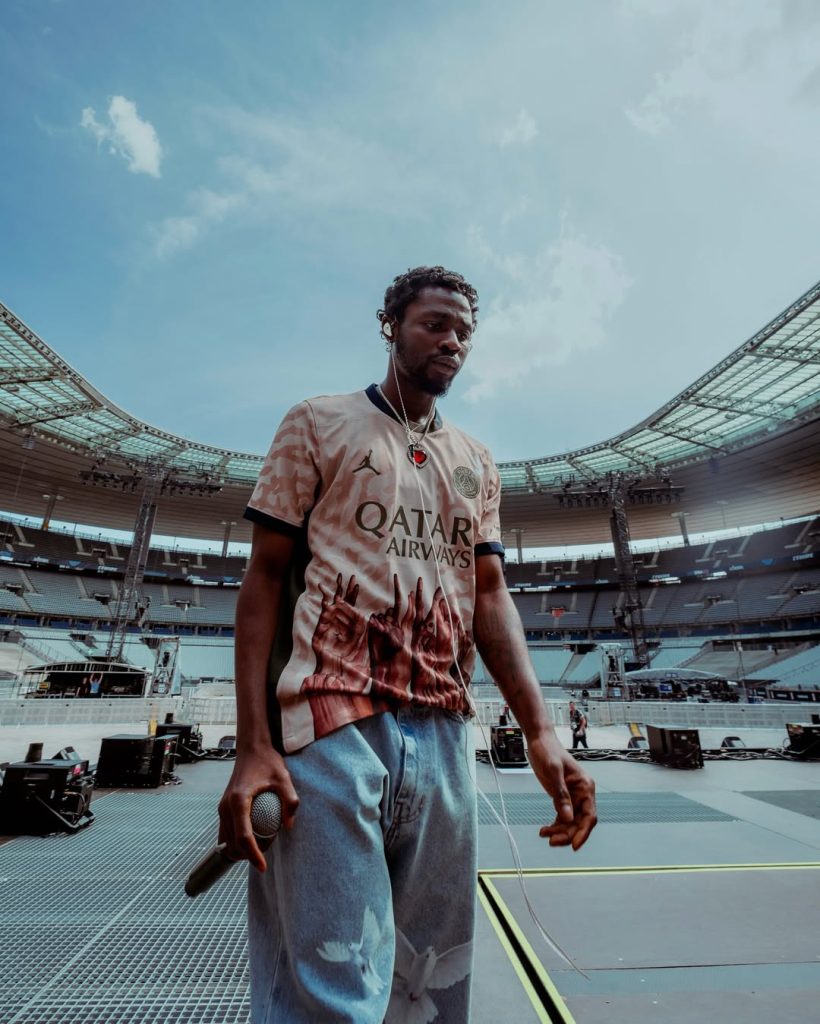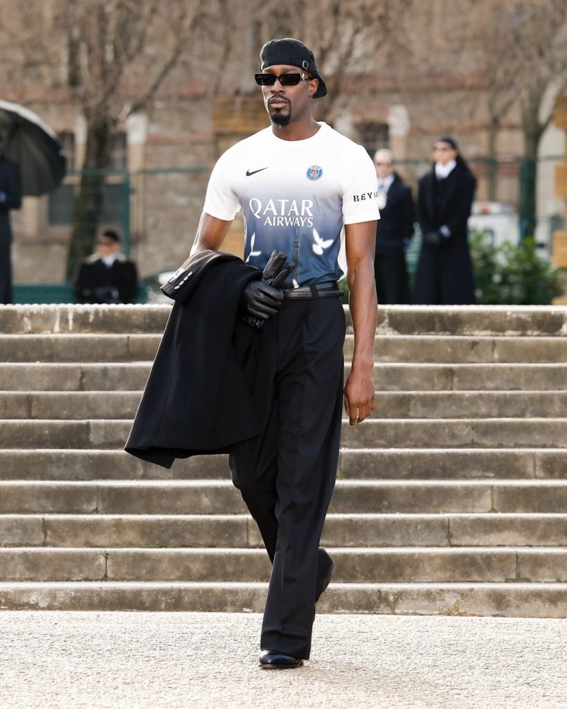 De sterren lijken gunstig te staan voor Emeric Tchatchoua. Net benoemd tot Chevalier des Arts et des Lettres zet de ontwerper zijn dialoog met Paris Saint Germain voort, op het moment dat de club schittert na zijn Champions League titel en de bekroning van Ousmane Dembélé als Ballon d’Or. Deze vierde samenwerking tussen het Parijse label en de club bevestigt een krachtige band. Voor FW26 krijgt het shirt de iconische zwaluwen van 3.Paradis, zwevend rond de Eiffeltoren tegen een donkere hemel. Op de catwalk gepresenteerd als volwaardig mode item en gedragen met een geklede broek, vervaagt het de grens tussen sportkleding en stedelijke garderobe.
