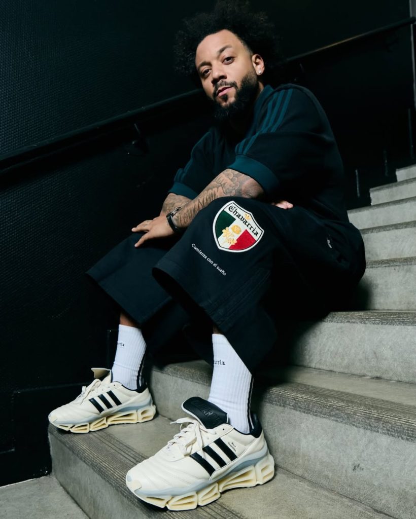 Een samenwerking met geschiedenis, die dit seizoen een bijzondere weerklank krijgt in aanloop naar het Wereldkampioenschap voetbal 2026 in Canada, de Verenigde Staten en Mexico, het land van herkomst van de ontwerper. Als officiële sponsor wordt adidas hier een expressief platform voor Willy Chavarria. Geen eenvoudige herinterpretatie van het Mexicaanse shirt uit 1986, maar een globale visie. Herwerkte voetbalschoenen, een bal nonchalant onder de arm, baggy shorts versierd met de Mexicaanse vlag. De aanwezigheid van Marcelo op de catwalk versterkt dit eerbetoon aan de voetbalcultuur.