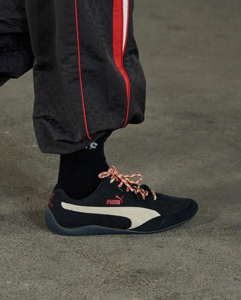 Terwijl Puma zijn aanwezigheid versterkt via events, heruitgaven en de lancering van een platform sneaker, slaat het Duitse merk de handen ineen met het Californische label Nahmias. Gespot op de Parijse catwalk verschijnt deze samenwerking op een strategisch moment, nu het fenomeen Marty Supreme, mede populair gemaakt door Timothée Chalamet, steeds meer zichtbaarheid krijgt. Een alliantie die duidelijk inzet op cultureel bereik.
