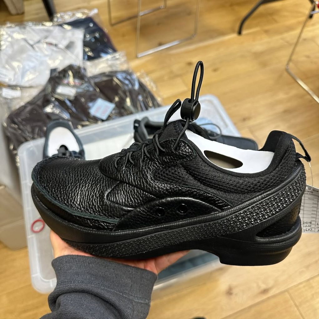 Bij Comme des Garçons wordt de schoen een centraal onderzoeksveld. Rei Kawakubo zet haar samenwerking met Air Jordan voort met een eerste interpretatie van de Jordan 11, voorgesteld in radicale full white en full black versies. Net als Sacai benut Comme des Garçons de show om ook samenwerkingen te tonen met het Britse label KIDSLOVEGAITE en met Asics, dat de Gel 1130 herinterpreteert. Een subtiel evenwicht tussen commerciële modellen en meer experimentele creaties.
