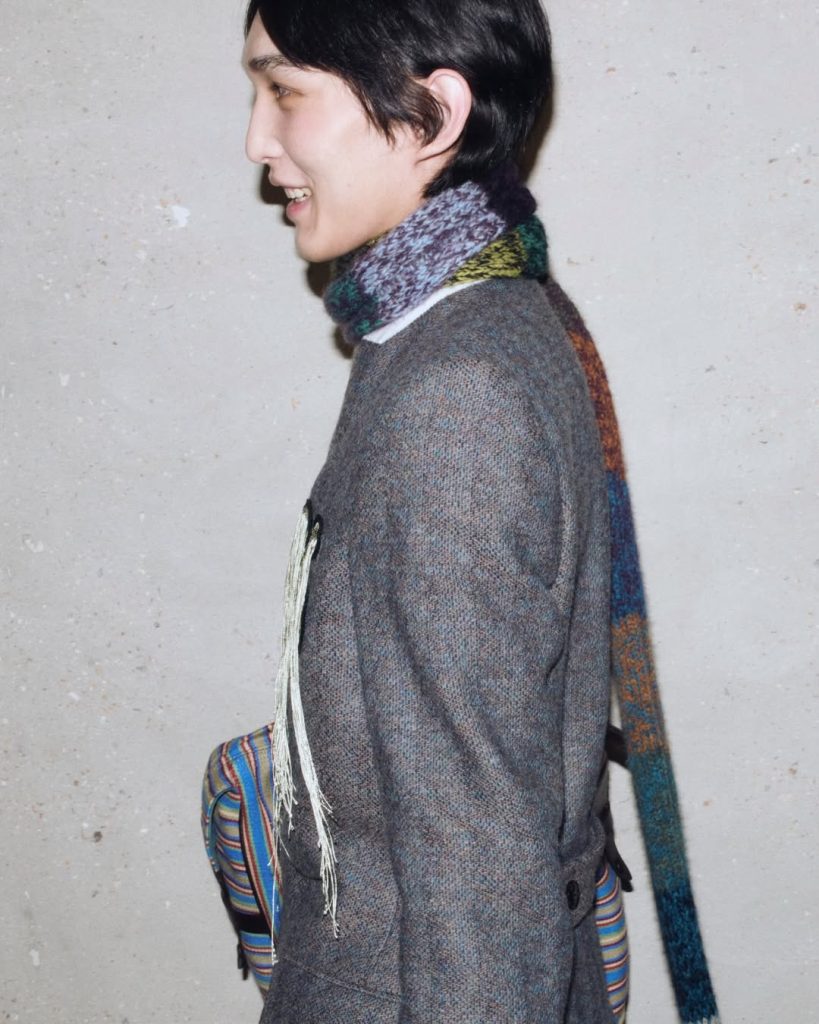 Bij Dries Van Noten componeert Julian Klausner voor zijn tweede collectie aan het hoofd van de mannenlijn een soort patchwork. De eerste silhouetten ademen een bijna kinderlijke onschuld om vervolgens te verschuiven naar referenties aan de wintersport van de jaren zeventig. Strepen, knitwear, sjaals en tassen dialogeren met elkaar terwijl de materialen subtiele contrasten opzoeken. Wol voert de boventoon, zijde sluipt binnen en creëert silhouetten met een zeldzame vloeibaarheid binnen de mannelijke garderobe. Onder de titel The Art of Moving On stapelt de collectie lagen, tijdperken en emoties op elkaar als een uitnodiging om vooruit te gaan zonder het verleden los te laten.