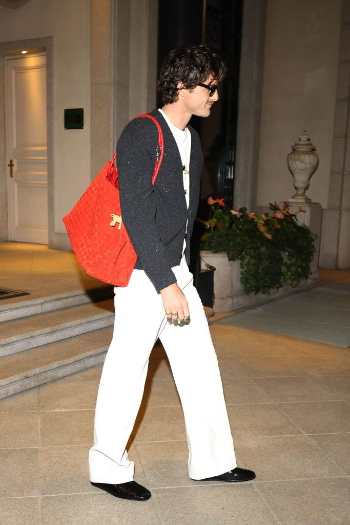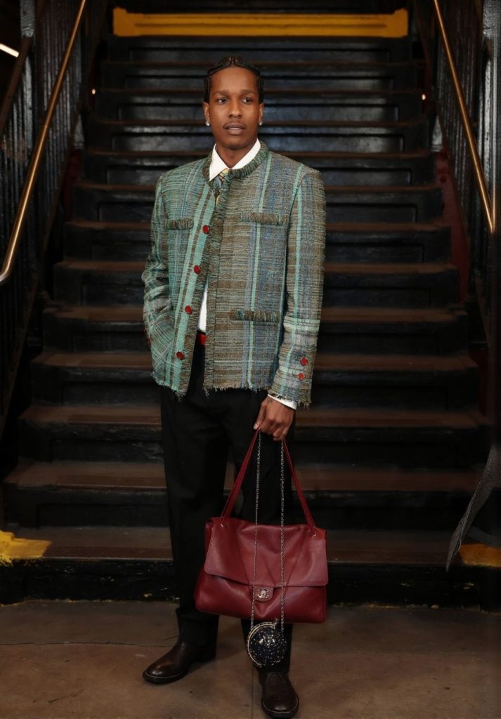 A$AP Rocky, al jarenlang beschouwd als een van de meest invloedrijke rappers op modevlak, heeft de handtas al lang omarmd. Aan zijn zijde profileert Jacob Elordi zich als een rijzende stijlfiguur, wiens kledingkeuzes met evenveel aandacht worden gevolgd als zijn filmrollen. Twee uiteenlopende universums, maar dezelfde vanzelfsprekendheid waarmee zij tassen dragen van modehuizen die historisch met het vrouwelijke vestiaire worden geassocieerd, van Bottega Veneta tot Chanel.