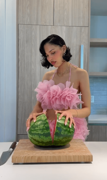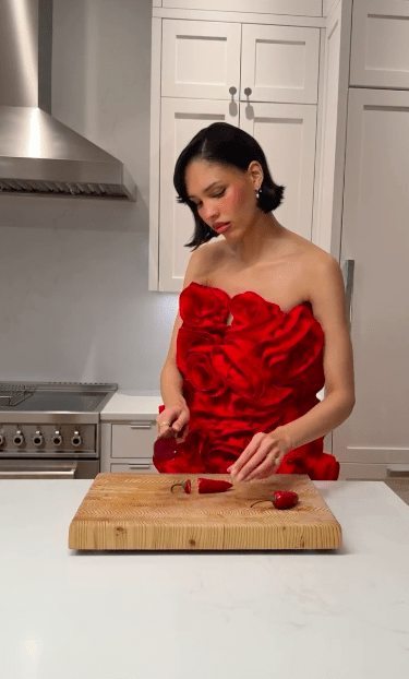 Op Instagram en TikTok maakt de Française Roxane Tardy indruk met een onmiddellijk herkenbaar concept. Haar outfit altijd perfect afgestemd op het gerecht dat ze bereidt. Bij elke nieuwe video herhaalt ze haar mantra. “Ik vind het heerlijk om mijn outfits te matchen met mijn gerechten”. Of ze nu een turquoise Coperni jurk combineert met zelfgemaakte bubble tea of een monochrome look kiest om een gerecht in dezelfde tinten te begeleiden, Roxane creëert een visuele harmonie die zowel foodlovers als modeliefhebbers verleidt.