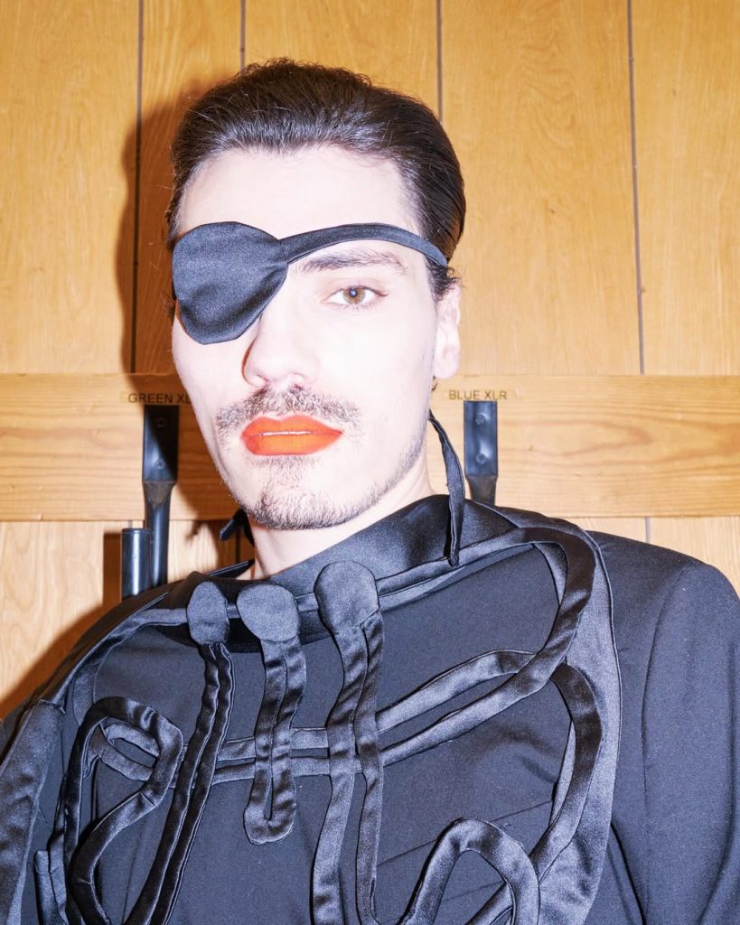 Met tartan aan de voeten, bodypaint, all-over prints, fijn bijna transparant haakwerk, verpleegkundige blouses in een nieuwe context, en overdreven strikken als visuele accenten, ontstaat een visueel spektakel — rebels, poëtisch en gelaagd. Net als een Prepared Piano: chaotisch in vorm, maar briljant georkestreerd.
