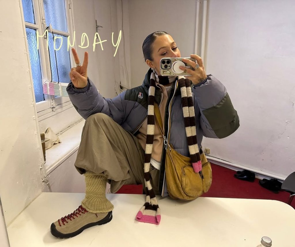 De mini sjaal is terug van weggeweest. Ze was alomtegenwoordig in de jaren tweeduizend en verschijnt opnieuw in alle mogelijke versies, van Avril Lavigne strepen tot de felle tinten van That’s so Raven en de glinsterende interpretatie van Ashley Tisdale. Ze wordt rechtstreeks op de huid gedragen met een puur decoratieve functie. Het gaat erom de hals te kleden eerder dan te beschermen.