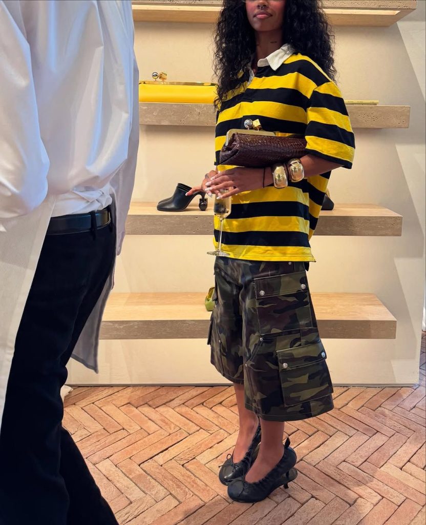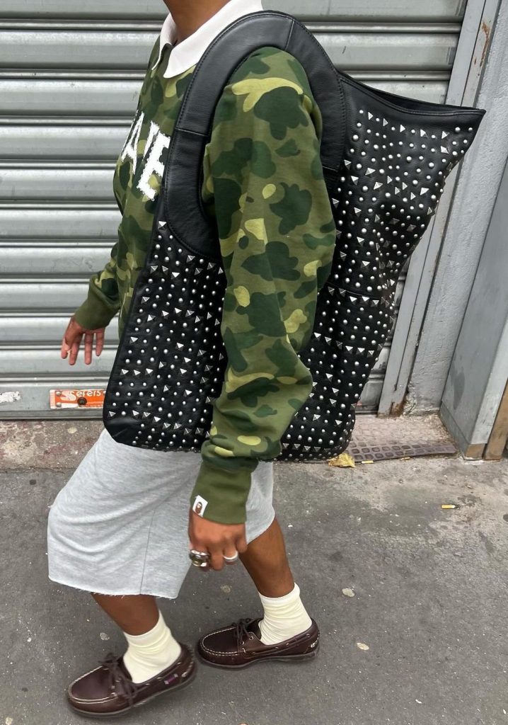 Ver voorbij zijn militaire of streetwear-roots, duikt camouflage nu overal op. Op de herfst-winter 2025-runways van Louis Vuitton en Blue Marble wordt het motief bevrijd van zijn klassieke oorlogsconnotaties. Op sociale media is camo de favoriet van it girls: subtiel verwerkt in een Diane V.-tas bij zangeres Mélissa Bon, op een T-shirt bij Paloma Elsesser, of als cargo short bij styliste Sierra Rena.