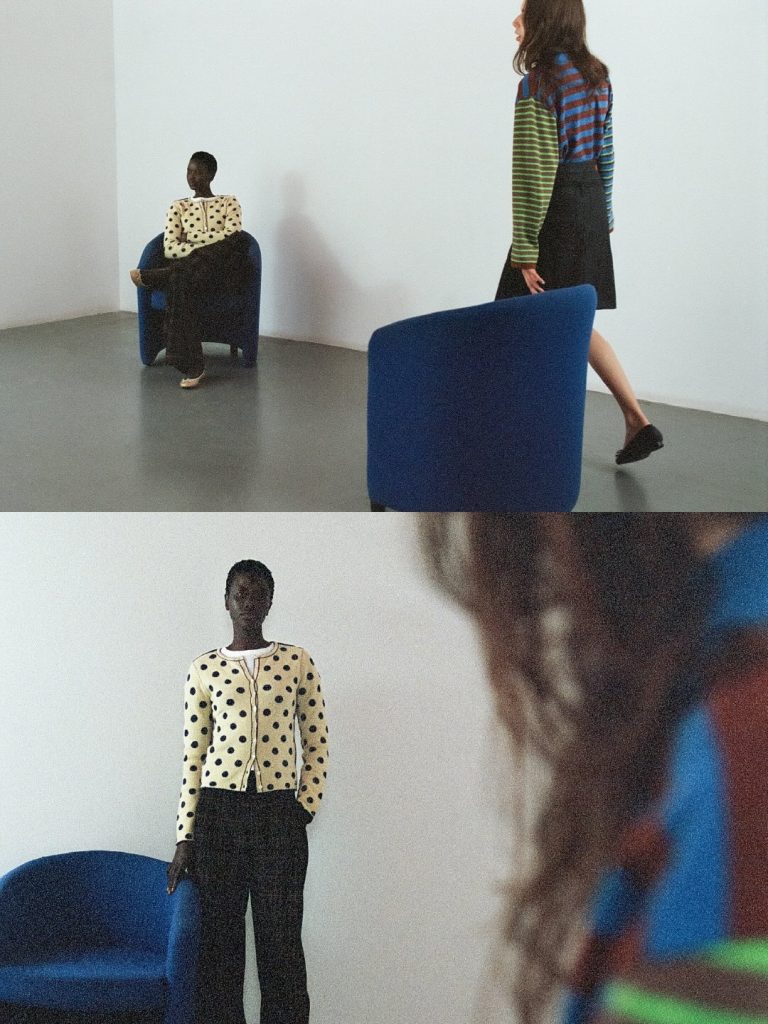 De productie blijft bewust kleinschalig. Elk stuk wordt met de hand vervaardigd in Londen en verschijnt slechts in zeer beperkte oplage. Deze schaal is geen beperking, maar een fundamenteel onderdeel van de identiteit van het label. Lucila Safdie pleit voor een mode waarin emotie en intimiteit onlosmakelijk verbonden zijn met het creatieve proces. Hybride stukken, zoals polo’s die een trui integreren of klassieke silhouetten verrijkt met kant, transparantie en subtiele uitsnijdingen, belichamen deze ingetogen complexiteit.
