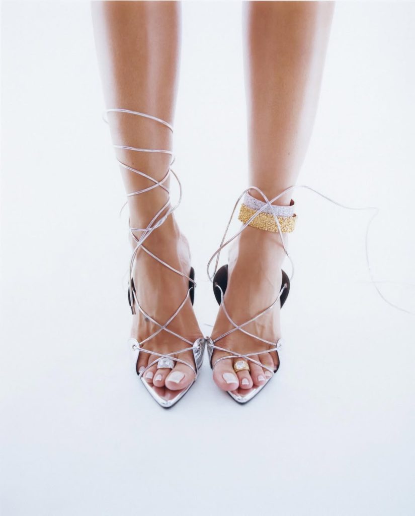 Van enkel tot teen: het voetjuweel maakt een triomfantelijke comeback — kostbaarder, zichtbaarder, onmiskenbaar aanwezig. Ver weg van de clichés van strandaccessoire of vakantiesouvenir herdefiniëren deze parures hoe het lichaam wordt aangekleed. Ze trekken de blik naar een onverwachte plek, verschuiven het zwaartepunt van stijl naar beneden, en geven de voet een ongeziene rol in het silhouet.