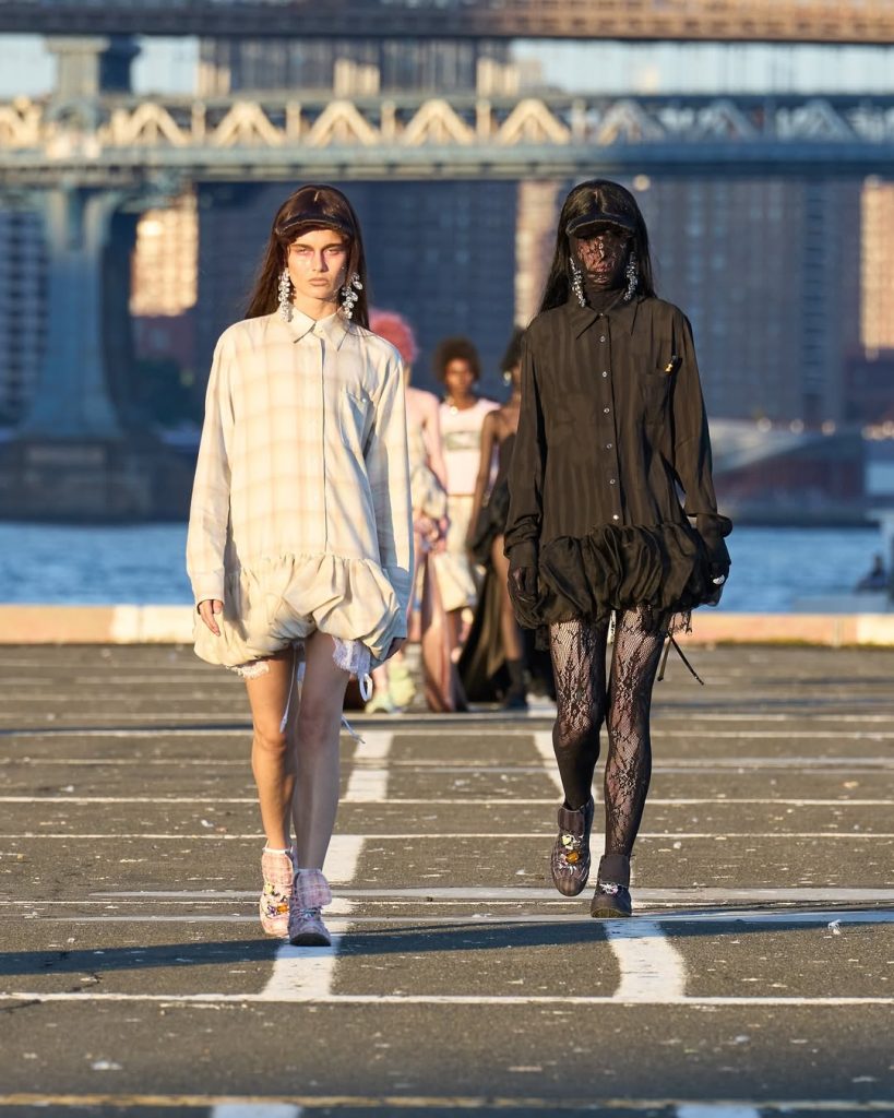 Sandy Liang, daarentegen, maakte van Chinatown het kloppend hart van haar show. Geïnspireerd door de grootmoeders uit deze emblematische wijk creëerde ze girly silhouetten waarin pastel, vichy, kant, oversized knopen en speelse kinderreferenties subtiel samenvloeiden. Met deze collectie brengt de ontwerpster een ode aan vrouwelijke figuren die vaak onzichtbaar blijven, maar in wezen bepalend zijn. Tegelijkertijd blies Valentino Beauty voor één nacht het mythische Studio 54 nieuw leven in. Het legendarische clubleven herrees, gedragen door iconen als Cher en Lenny Kravitz, die de geest van de plek opnieuw tot leven brachten. Mode-influencer @Lyas vatte het kernachtig samen: « it was so good ».