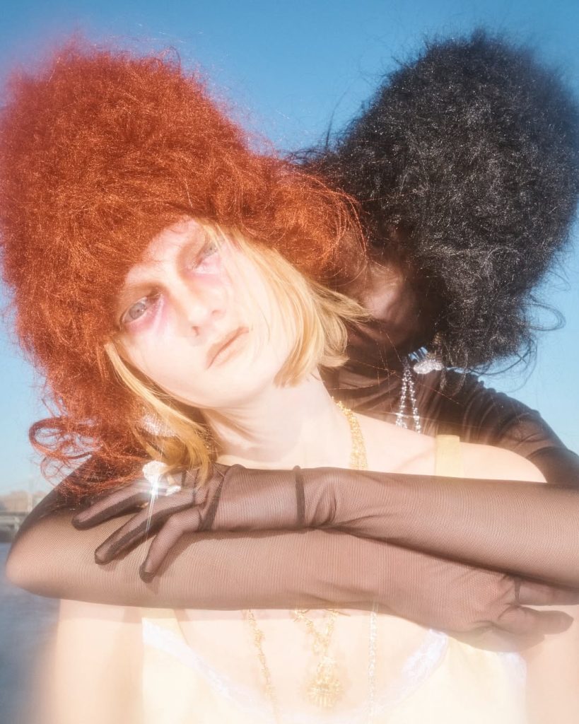 Om de dualiteit te verkennen koos Collina Strada voor een krachtige mise-en-scène: modellen liepen in duo’s, identiek gekleed. De één in kleur opende de show, de ander, in zwart en gesluierd, volgde op enkele passen afstand als een schaduw. Dit dubbelspel maakte de ambivalentie van het kledingstuk tastbaar. Een bruidsjurk, bijvoorbeeld, transformeerde in een rouwkleed wanneer ze van wit naar zwart verschoof. Door te spelen met zulke tegenstellingen bevraagt de ontwerpster hoe context — sociaal, politiek of intiem — de betekenis van een kledingstuk, en daarmee onze manier van dragen, fundamenteel verandert.