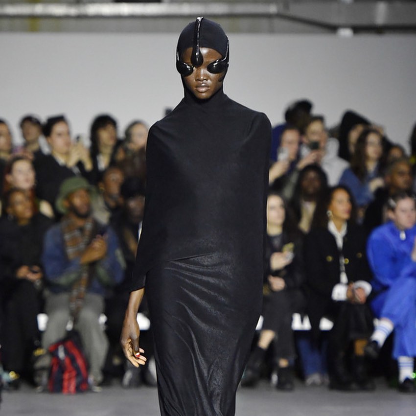 Dit seizoen presenteerde hij Stonehaven, een immersieve collectie op een spiraalvormige catwalk in de vorm van een @. Muterende silhouetten, hybride texturen en bijna gore-details: Mizra blijft zijn post-human en dystopische esthetiek uitdiepen, waarmee hij de toon zette nog voor de officiële aftrap. Verrassing van de avond: zangeres Théodora die voor het eerst de runway betrad.