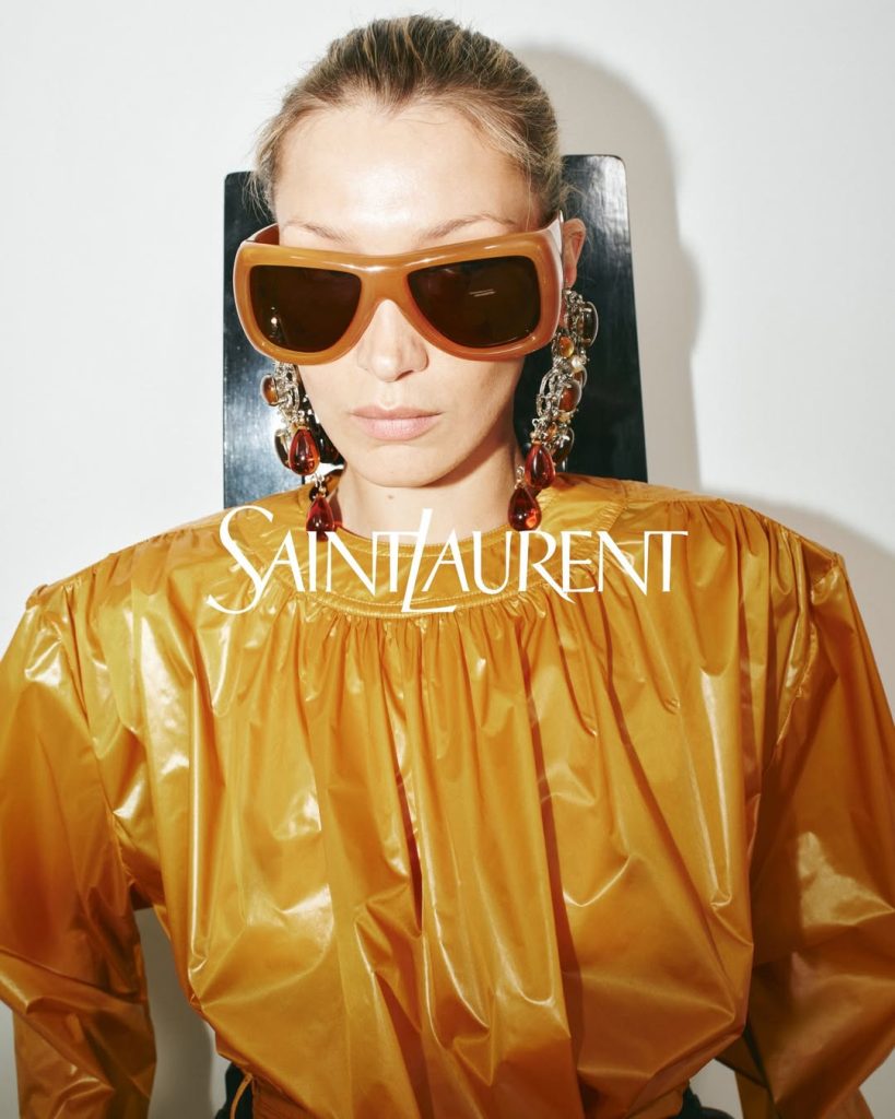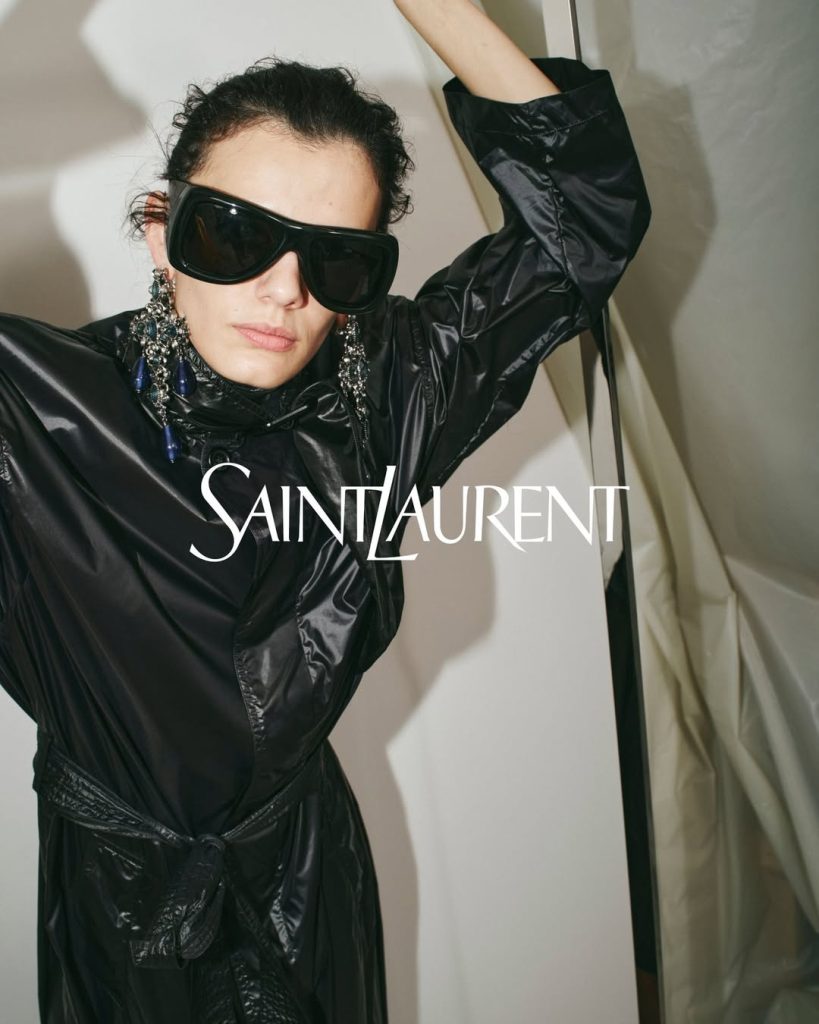 Saint Laurent bevestigt de shift naar meer structuur, die vorig seizoen al werd ingezet. De afsluitende show van de dag opende met 18 all-leather looks: trenchcoats hoog gesloten, oversized perfecto’s, rechte rokken, ballonmouwen en XXL-strikken.