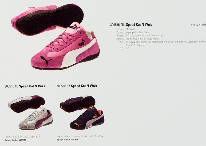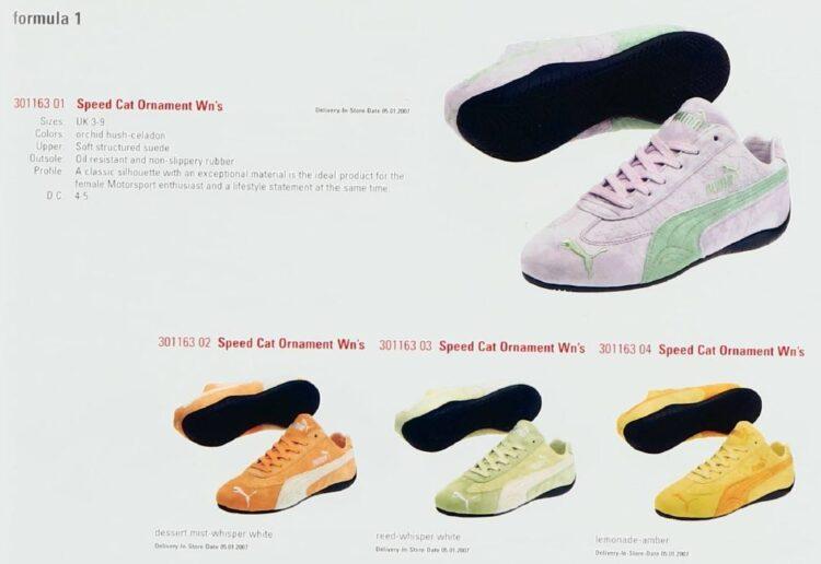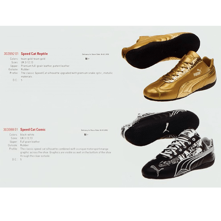 Ontworpen in 1999, vindt de Speedcat zijn oorsprong in het vorige decennium, aan de voeten van de Duitse piloot Stefan Bellof. Voor hem creëerde Puma een hoge leren raceschoen. Bij de lancering bood het merk twee versies aan: een hoge en een lage.