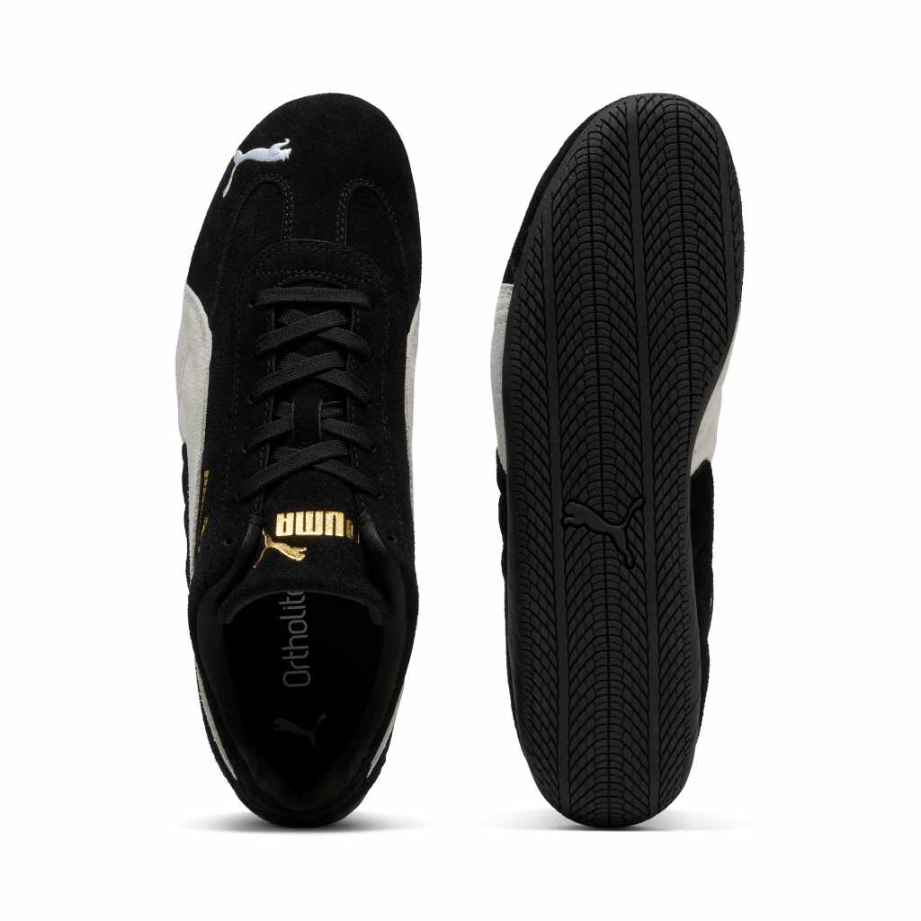 Wat de fans overtuigde? Een ultradunne, comfortabele zool die optimale grip biedt — essentieel voor coureurs die hun gevoel met het gaspedaal wilden behouden. De combinatie van leer en suède maakt hem zowel duurzaam als ademend. Zijn unieke profiel, geaccentueerd door Puma’s iconische witte Formstrip, onderscheidt hem duidelijk van de concurrentie. Een bewijs van het feilloze inzicht van Puma: vandaag de dag dragen sterren als Max Verstappen en Lewis Hamilton nog steeds aangepaste Speedcat — en leenden ze zelfs hun imago voor recente campagnes.