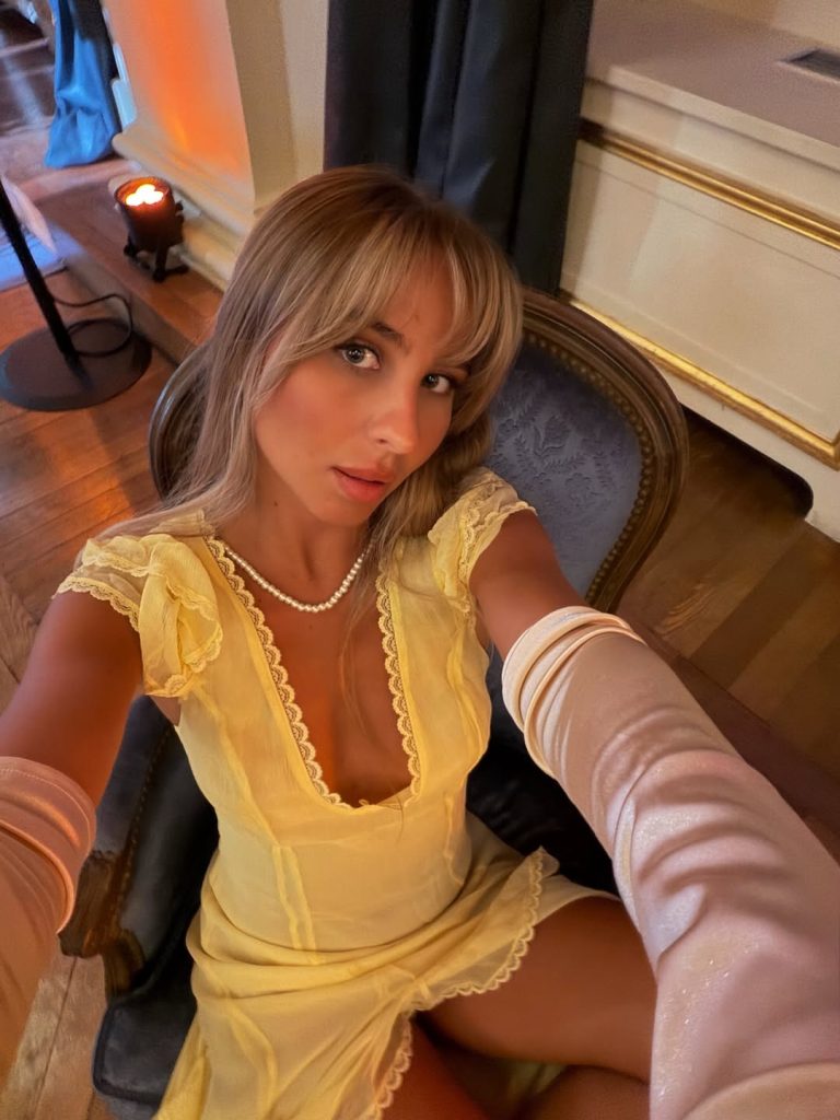 De interesse schuilt minder in een historisch correcte reconstructie dan in de hedendaagse toe-eigening van bepaalde codes. Net als @louisergt, een opvallende gast tijdens het evenement, kiezen sommigen voor merken als Oh Polly om subtiel de geest van de serie op te roepen: korsetjurken die de buste accentueren, ontblote schouders, pastelkleuren die doen denken aan de Engelse aristocratie zoals die in de serie wordt verbeeld.