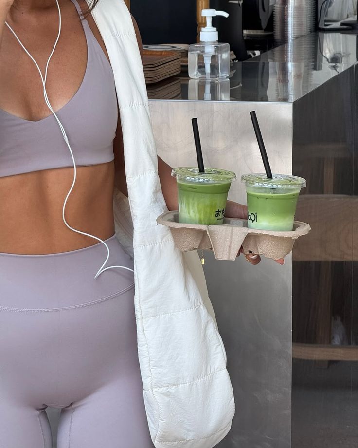 De gym set blijft een van de emblemen van de clean girl. Niet alleen gedragen richting pilatesles, maar net zo goed om op een terras een matcha te nippen. Ze nestelt zich in het dagelijkse leven als een uniform, een discreet signaal van een actieve en verzorgde levensstijl.