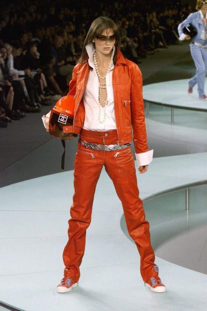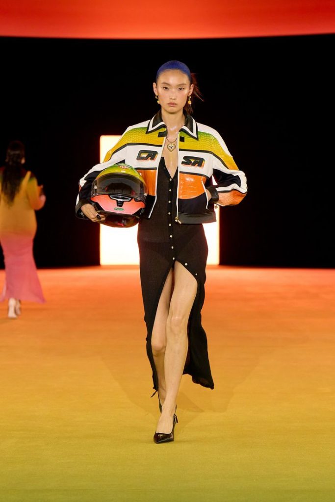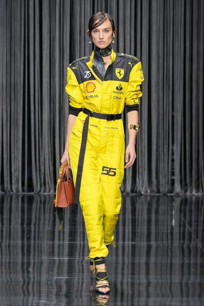 De racingesthetiek is geen nieuw terrein voor de luxesector. Begin jaren 2000 brachten merken als Chanel, Dsquared2 en Dolce & Gabbana al race-elementen in hun shows: ritsoveralls, helmen en zwart-witte ruitpatronen sierden de catwalks.