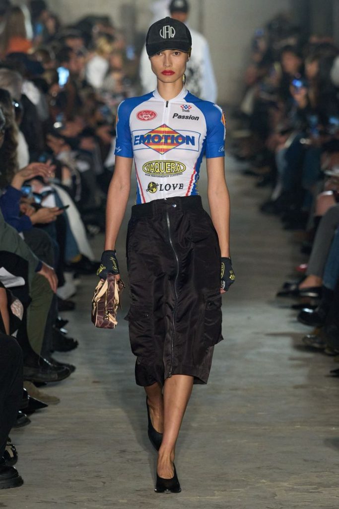 Vandaag krijgt dat race-DNA een frisse herinterpretatie dankzij een nieuwe lichting ontwerpers. Het Londense Mowalola verwerkt racing referenties in grafische, soms controversiële looks. Bij Off-White, Ferrari en Vaquera worden pilotenuniformen gedemonteerd en heruitgevonden in modieuze silhouetten. Het resultaat? Een mix van Y2K-nostalgie en functionele elegantie.