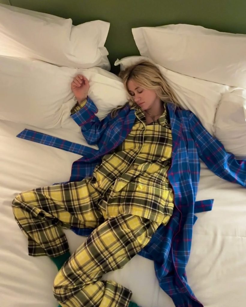 Wat de catwalk heeft omarmd, belandt logischerwijs ook op de eindejaarslijstjes. Model & content creator Léa Jul, bekend om haar hyperniche aanbevelingen, tipt twee bijzonder verfijnde pyjamamerken: het Italiaanse Schostal, meester in perfect katoen, en de Parijse boetiek Rubirosas, een waar heiligdom voor pyjama’s. Zelfs fotografe en influencer Alice Moitié waagt zich eraan en beveelt eveneens een model van het Italiaanse label aan.