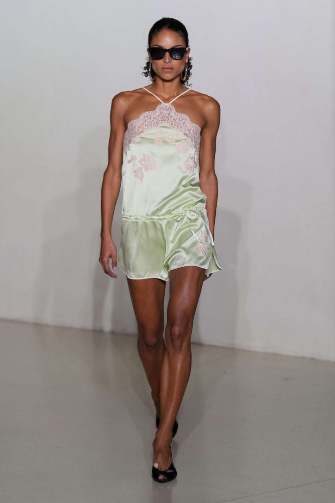 In de Lente-Zomer 2026-collecties wordt de slipdress bevestigd bij Victoria Beckham en Vaillant, waar het stuk inmiddels een seizoenssignatuur is geworden. Dolce & Gabbana leunt eerder richting klassieke katoenen pyjama’s. Een défilé dat trouwens dienstdoet als decor voor een scène uit de komende film The Devil Wears Prada 2. En bij Prada heeft de Herfst-Winter 2025-campagne met Kendall Jenner de trend definitief verankerd: de pyjama hoort nu officieel in het straatbeeld.