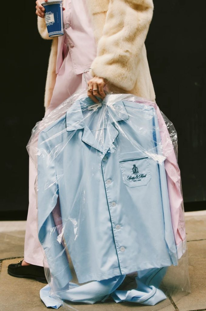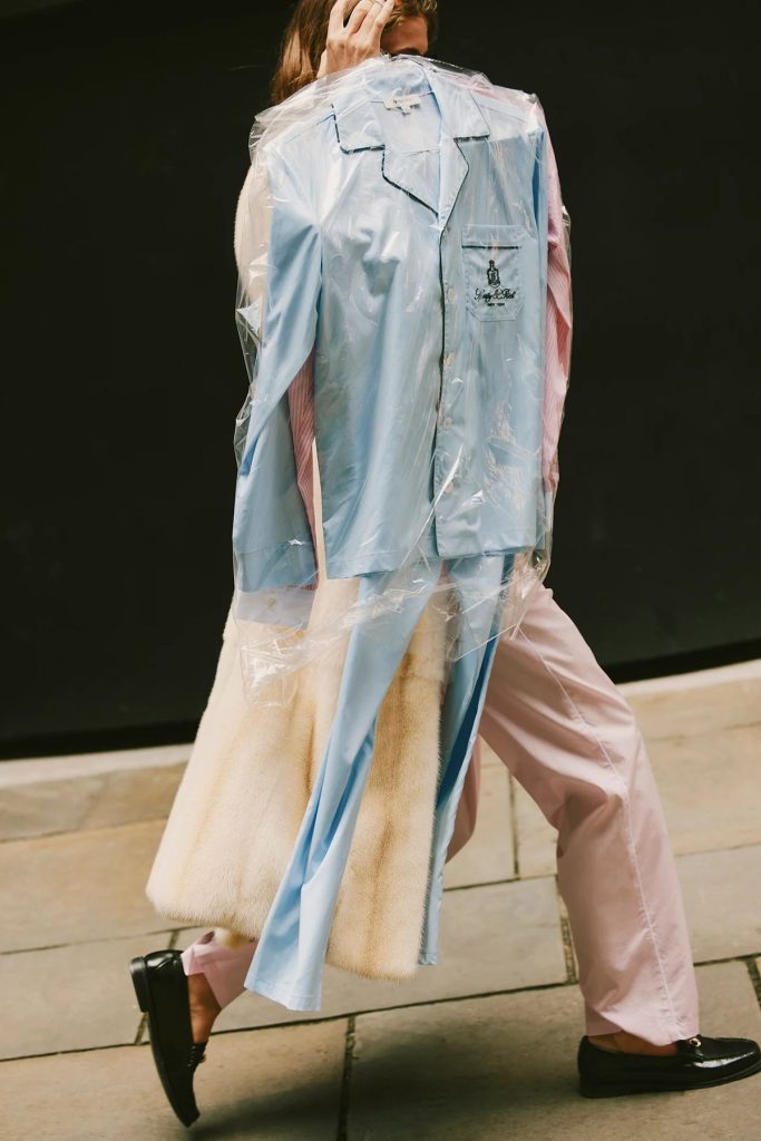 Een pyjama buitenshuis dragen heeft bovendien niets met nonchalance te maken – integendeel, het vraagt om finesse. De sleutel? Contrasterende stijlen combineren.