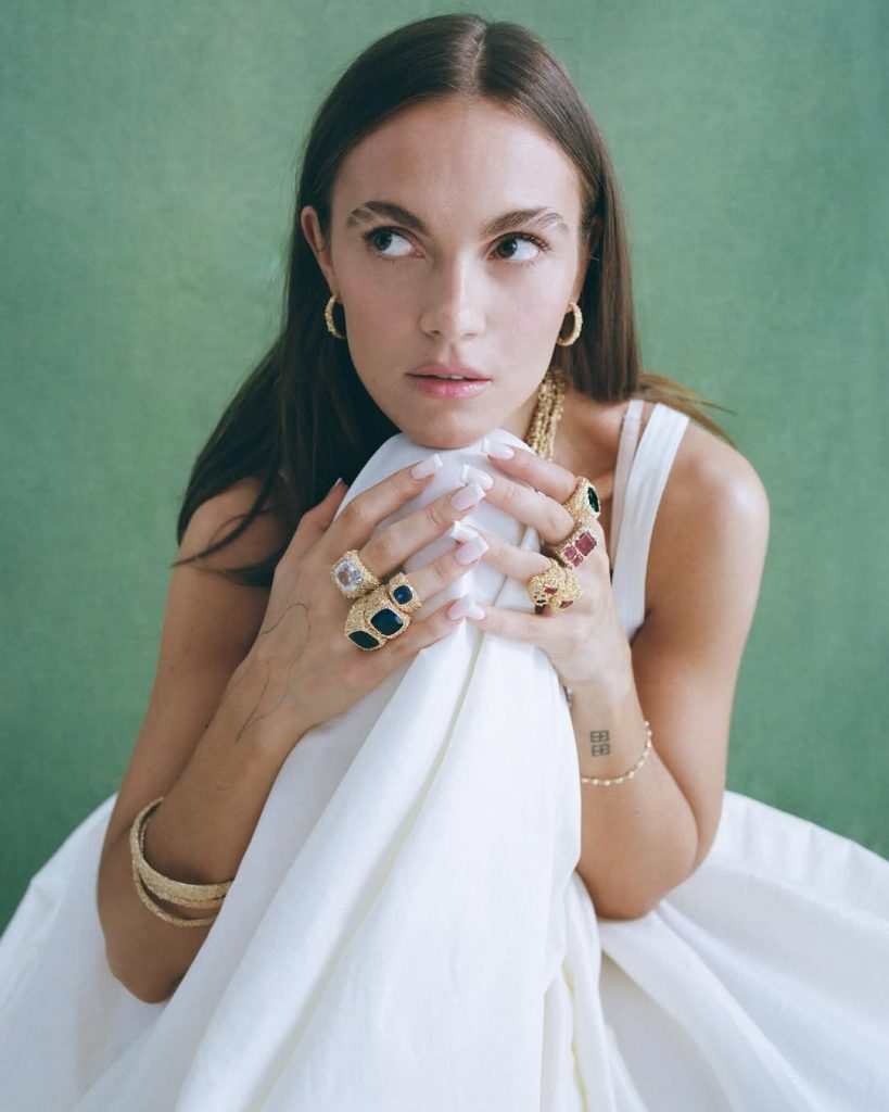 Twee strategische samenwerkingen katapulteerden haar nog verder naar de voorgrond van de mode-industrie. In 2023 vertrouwt Ganni haar een eerste accessoirelijn toe – amper een jaar na de oprichting van haar eigen label. Kort daarna volgt Timberland, dat ze met durf heruitvindt: de iconische 6-inch boots krijgen een futuristische upgrade in zilver metallic lak, terwijl een versie op hoge hakken — een gewaagde maar geslaagde zet — haar vrouwelijke visie op streetwear kracht bijzet. Het commerciële succes spreekt boekdelen: intussen werkte Timberland al drie keer met haar samen.