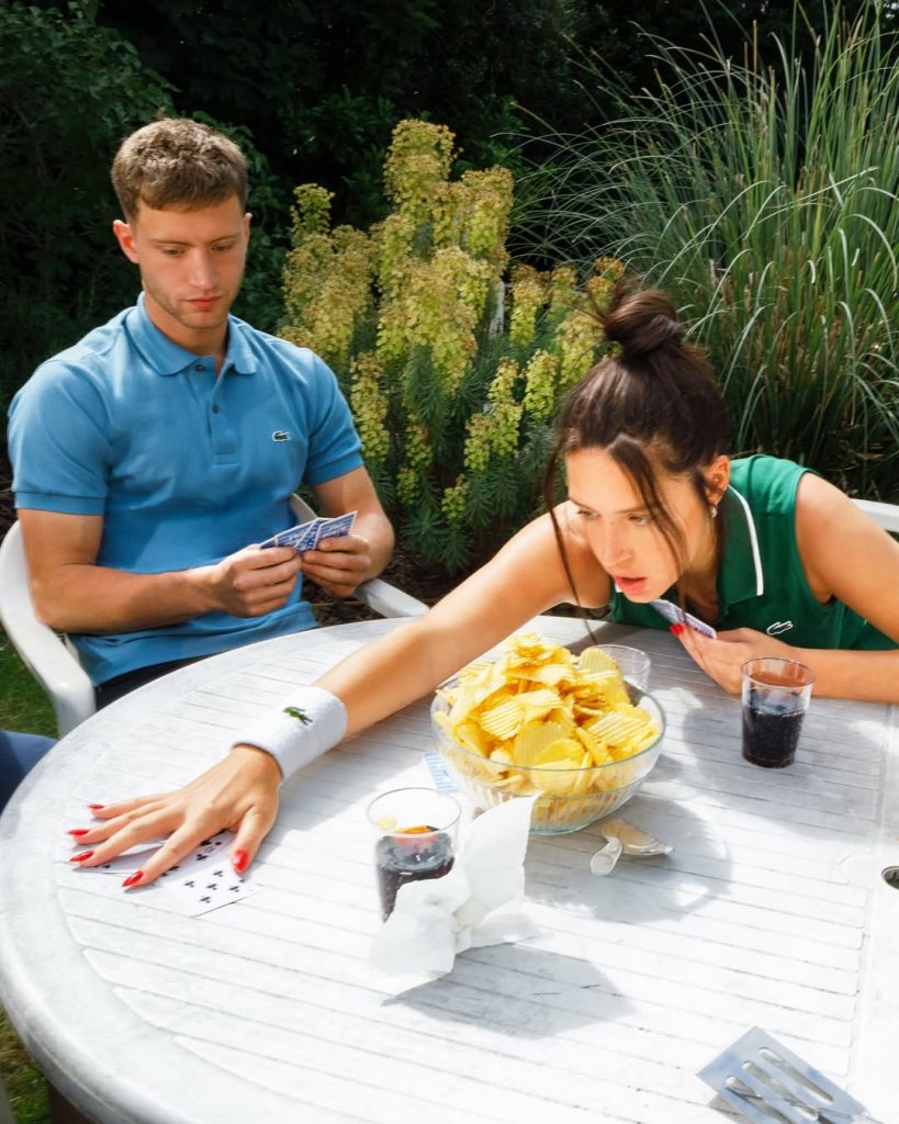 De aanpak van Burberry staat niet op zichzelf. De afgelopen jaren hebben steeds meer premiummerken elementen uit de populaire cultuur in hun communicatie geïntegreerd. Zo koos Lacoste voor de Franse actrice Adèle Exarchopoulos, bekend om haar intense rollen en haar natuurlijke, ongefilterde manier van spreken. Ver weg van het burgerlijke imago dat het merk lang cultiveerde, toont de campagne een uitgesproken populaire esthetiek: barbecue met vrienden, druipende burgers en tuinstoelen als achtergrond.